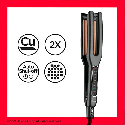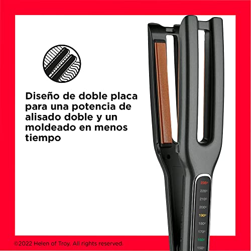 La plancha de pelo Revlon RVST2204 con doble placa alisa en una sola pasada, reduciendo el tiempo de peinado con su tecnología de cerámica de cobre.