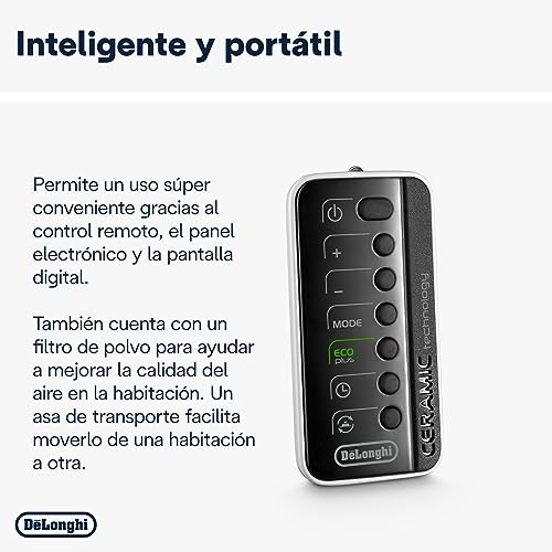 El termoventilador cerámico De’Longhi TCH8993ER.BC ofrece calefacción eficiente y silenciosa con 3 ajustes de potencia, función Eco-Energía y control remoto.