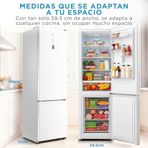 El Frigorífico Combi Midea Total No Frost – MDRB424FGE01OE ofrece tecnología avanzada, eficiencia energética y un diseño moderno para optimizar el almacenamiento de alimentos.