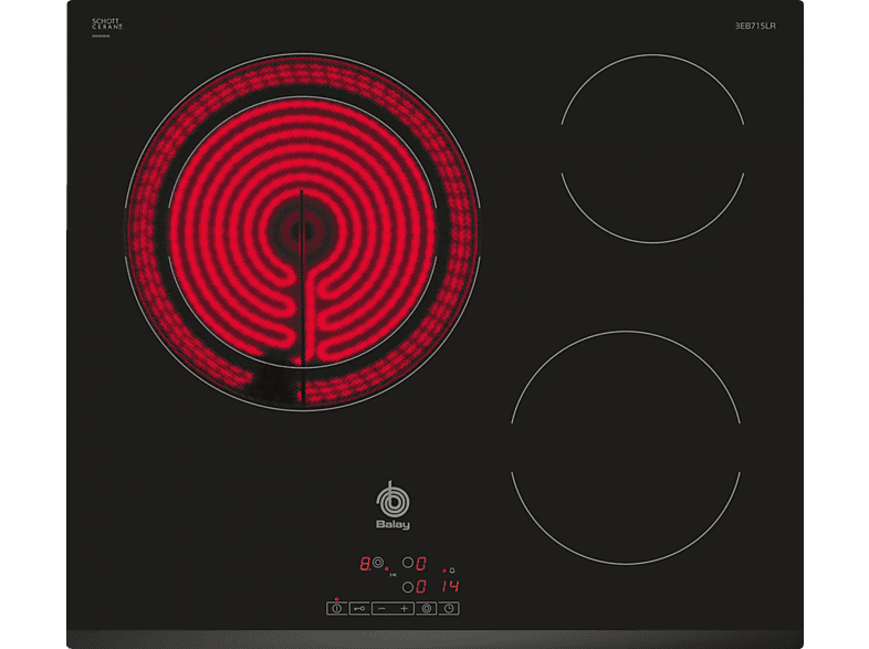 La placa vitrocerámica Balay 3EB715LR con una zona gigante de 28 cm ofrece eficiencia y flexibilidad para tu cocina.