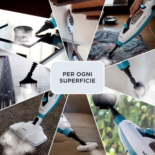 El limpiador a vapor plegable Ariete 4175 steam mop 10 en 1 ofrece potencia y versatilidad para una limpieza completa y sin químicos, con múltiples accesorios y diseño ergonómico.