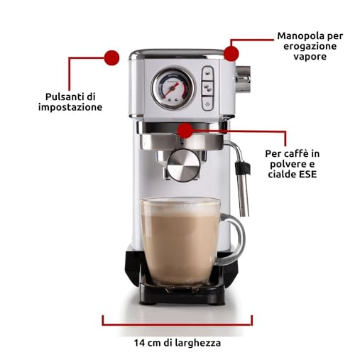 Ariete – Cafetera Ariete 1381/14 Slim Espresso con manómetro para café molido y monodosis.