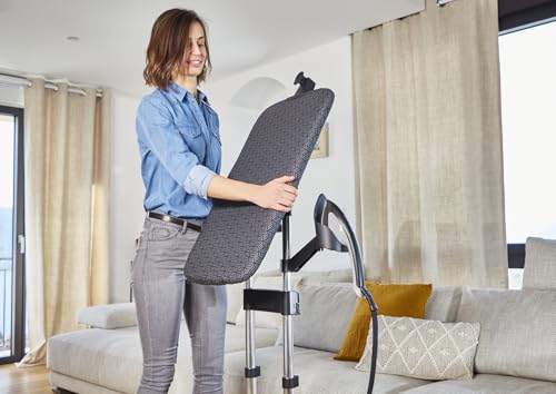 Este centro de planchado se destaca por su base extraíble, que proporciona una flexibilidad excepcional. No solo es ideal para tus prendas de vestir, sino que también es perfecto para refrescar cortinas, muebles y mucho más, asegurando que todo en tu hogar luzca impecable.