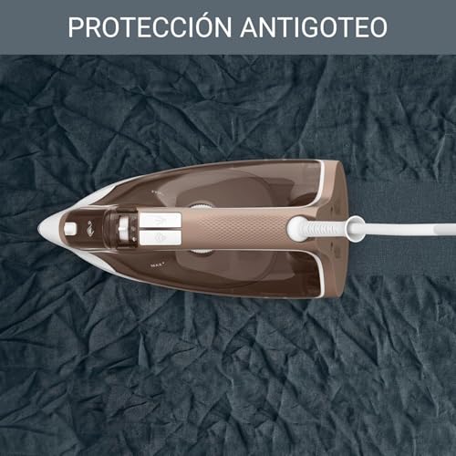La plancha Rowenta DX1635 Effective ofrece un golpe de vapor de 120 g/min y 2.400W de potencia para un planchado eficiente y fácil.